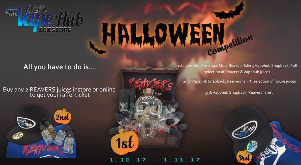 “The Vape Hub – Boksburg and Reaver’s VapE-Liquids want to again Congratulate all the Winners and also thank all the Vaper’s who participated in the Halloween 2017 Competition, for their valued support….
